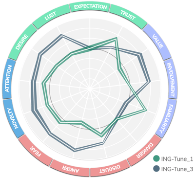 In dit onderzoek kregen 24 respondenten 5 verschillende tunes te horen en scanden we de activatie van (onbewuste) emoties. Door uitkomsten met elkaar te vergelijken, zagen we welke reclame-tune het best in staat was om de gewenste gedragsintentie op te wekken, iets dat met uitvragen niet mogelijk is.